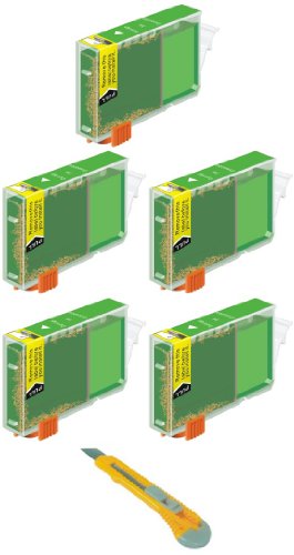 Five Green Compatible Ink Cartridges Canon CLI-8 (CLI8G) CLI8 + Cutter for Brother Printers PIXMA Pro 9000, PIXMA Pro 9000 Mark II Feature